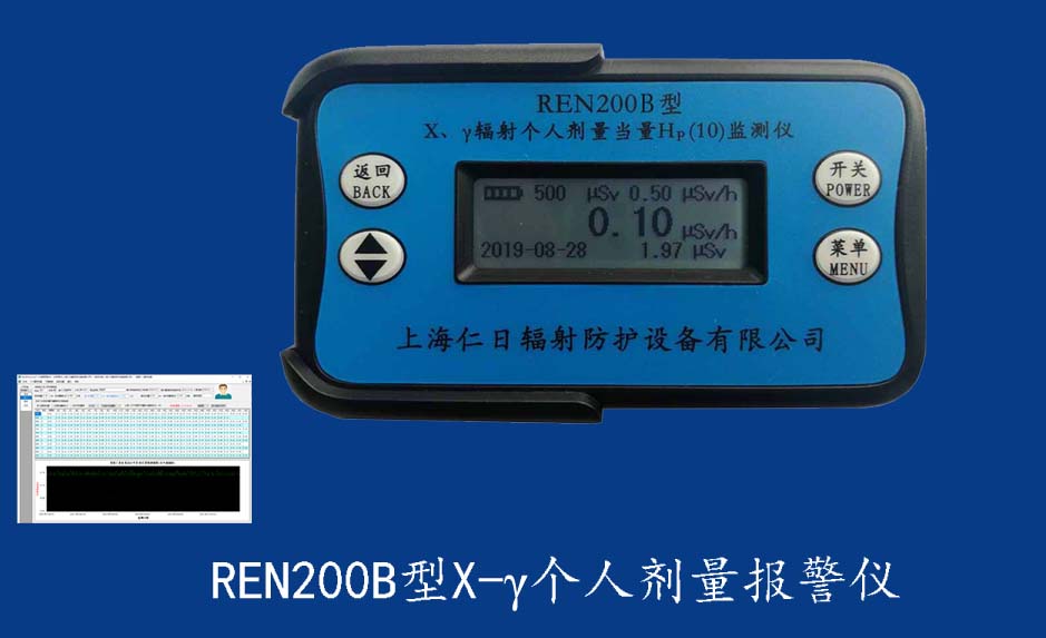 REN200A 個(gè)人報(bào)警儀REN200A型X、γ輻射個(gè)人劑量當(dāng)量HP(10)監(jiān)測(cè)儀(簡(jiǎn)稱:個(gè)人劑量報(bào)警儀)內(nèi)置高靈敏度蓋格計(jì)數(shù)管為探測(cè)器,主要用來監(jiān)測(cè)各種放射性工作場(chǎng)所的X、γ以及硬β射線的輻射,具有響應(yīng)快,測(cè)量范圍寬的特點(diǎn)。能顯示工作場(chǎng)所的劑量當(dāng)量率和累積劑量,更換電池時(shí),日期及累積數(shù)據(jù)能永久保存。可選配RenRiPersonal個(gè)人劑量管理軟件,該軟件可存儲(chǔ)多個(gè)人的歷史數(shù)據(jù),能記錄日累積、月累積、年累積、輻照時(shí)長(zhǎng)、計(jì)算平均劑量率、扣除或不扣除本底輻射,且以文字和圖譜的方式展現(xiàn)數(shù)據(jù)。廣泛應(yīng)用于核電站、加速器、鋼鐵、化工、同位素應(yīng)用、工業(yè)X、γ無損探傷、放射醫(yī)療、鈷源治療、γ輻照、放射性實(shí)驗(yàn)室、核設(shè)施周圍環(huán)境監(jiān)測(cè)等領(lǐng)域中的工作人員進(jìn)行個(gè)人安全